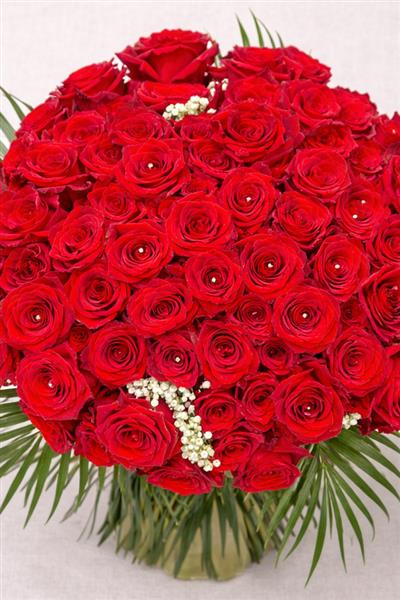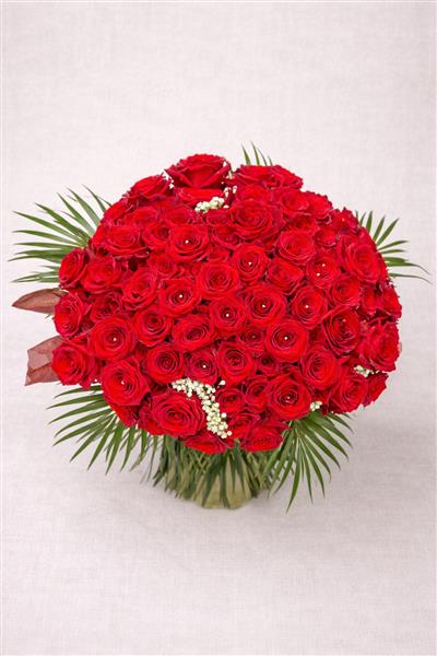 A breath taking hand-tied bouquet of luxurious red roses, expertly arranged to create a bold and unforgettable statement. Rich in colour and abundance, this striking design is perfect for celebrating love, passion, and special occasions