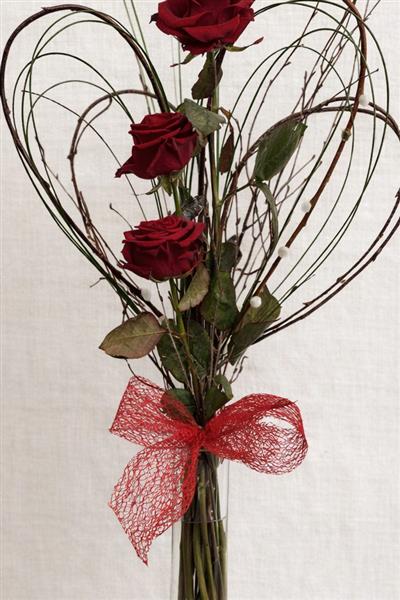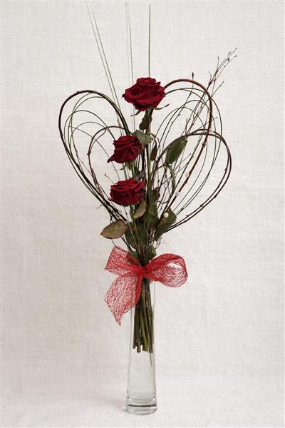 A minimalist yet powerful floral statement featuring three velvety red roses within a handcrafted heart of natural branches. Simple, elegant, and full of sentiment.